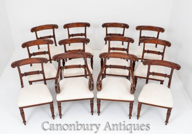 Set of 12 ( 10 + 2 ) William IV Style Mahogany Dining Chairs.