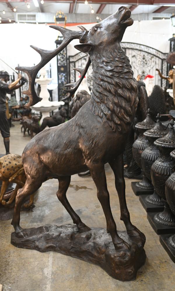 You are viewing a monumental bronze casting of a giant rearing elk