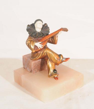 – Art deco style bronze casting of a clown mandolin player by Chiparus