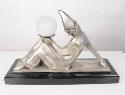 – Classic art deco style bronze Harlequin lamp by Bourraine