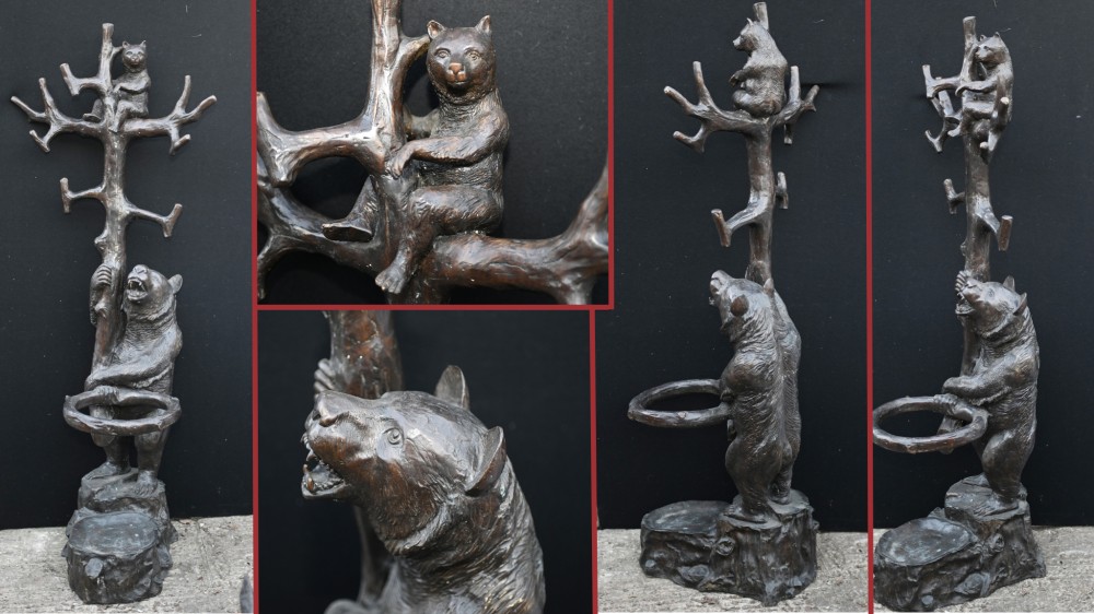 CLICK HERE TO BUY THIS BLACK FOREST COAT STAND BRONZE BEAR CUB CASTING ON CANONBURY ANTIQUES