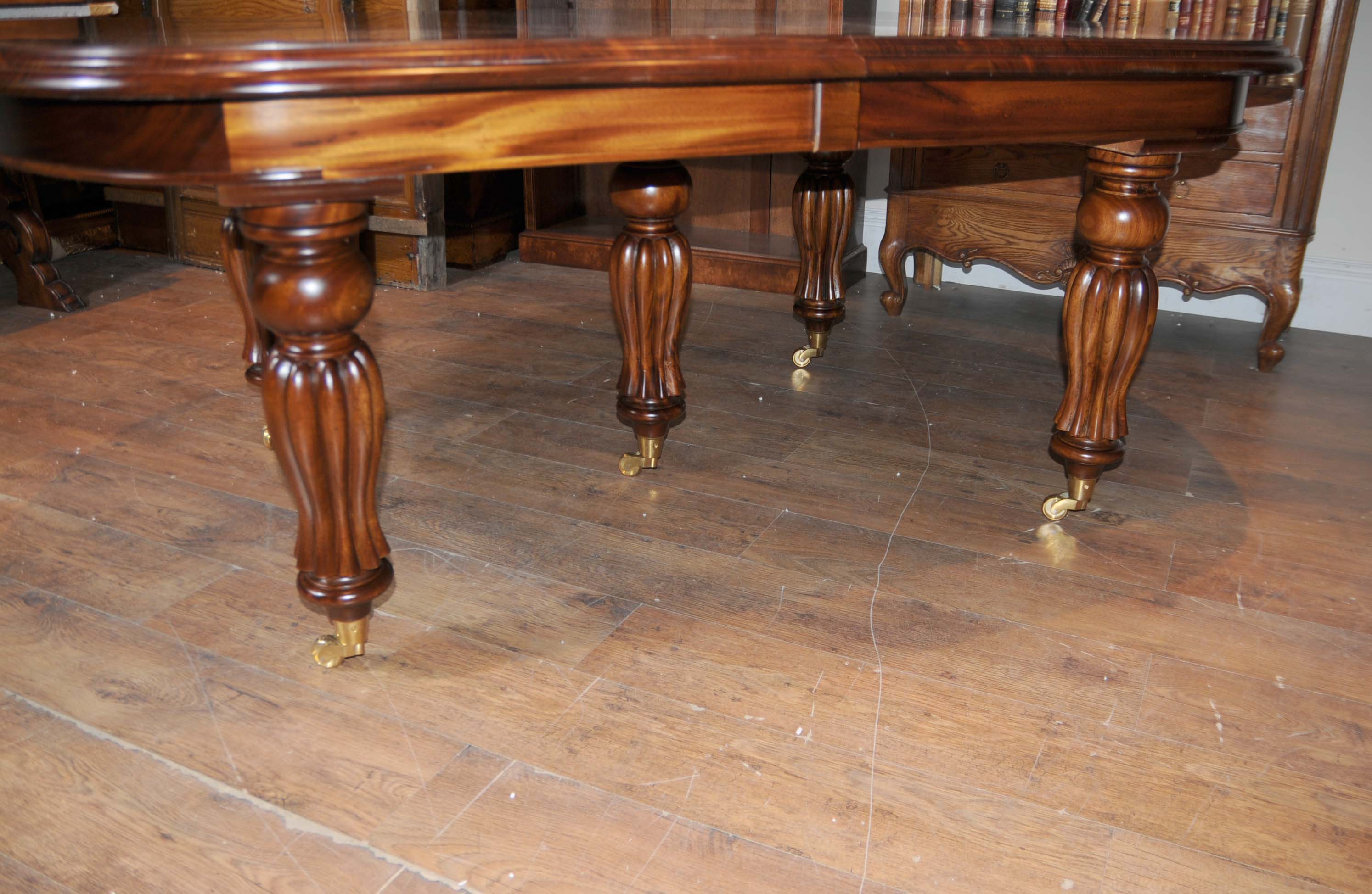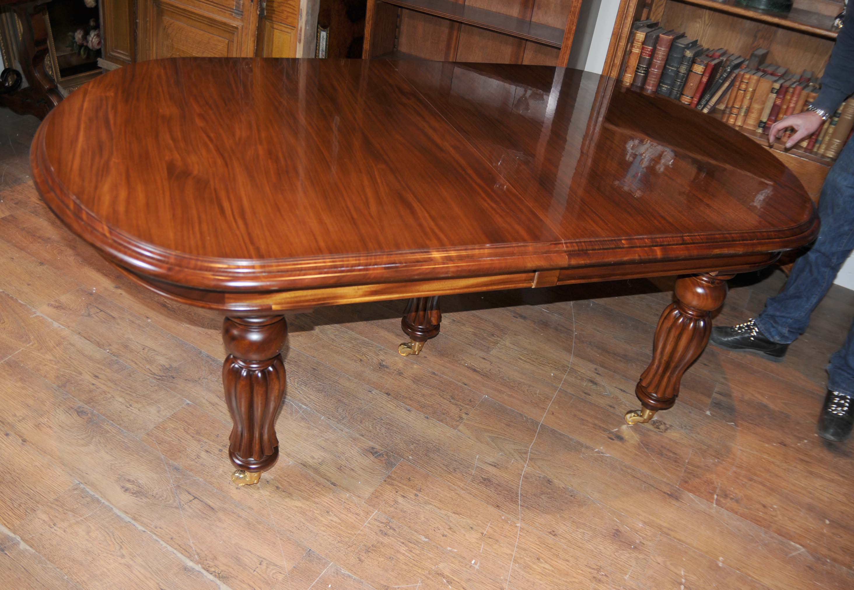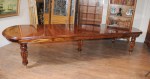 Each leaf on the mahogany Victorian dining table will measure approx 24 inches. Some tables have up to four leaves. The largest configuration of the dining table would be for large, upscale dinner parties. Victorian tables are also popular in executive boardrooms. We have sold Victorian tables that measure 24 feet long and can sit 28 – 30 people. Perfect for a UN conference!