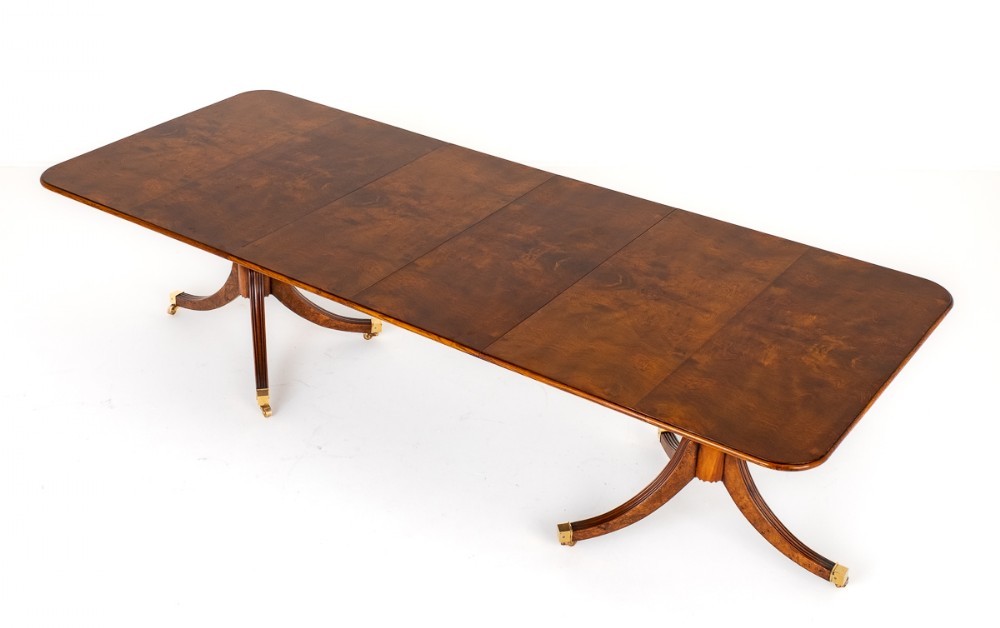Burr Walnut 2 Pedestal Regency Revival Dining Table.