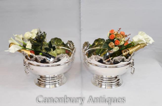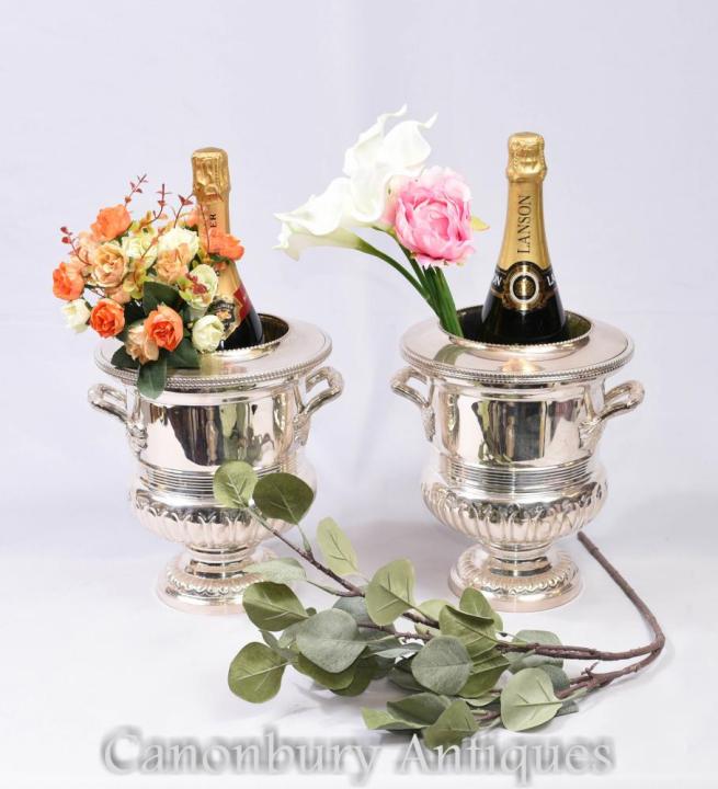 CLICK HERE TO BUY THIS Pair Silver Plate Champagne Stands Ice Bucket Cooler Restaurant Wine ON CANONBURY ANTIQUES