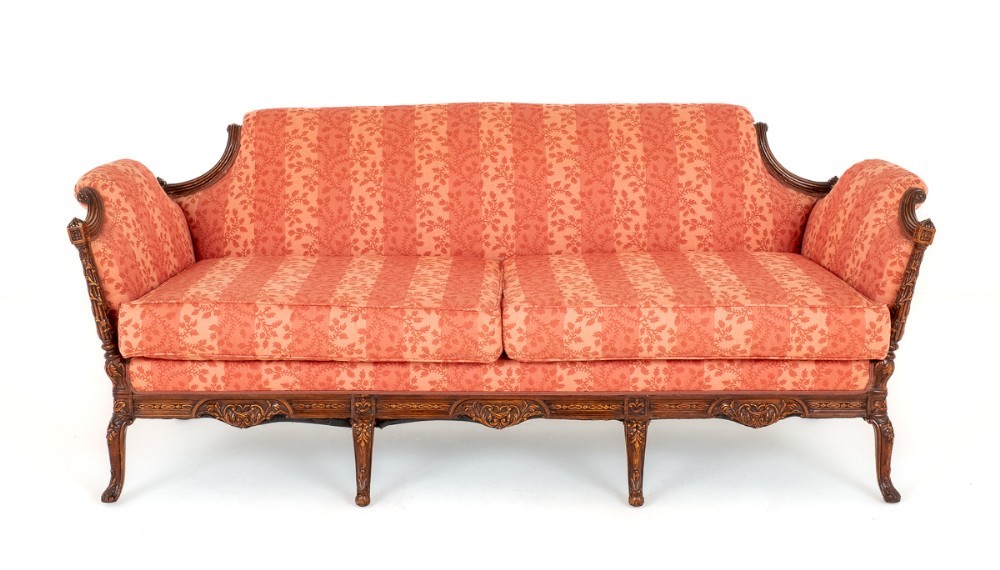 The Sofa Features Carved Rails, Elegant Shaped Arms With Carved Supports and a Shaped Back also with Carved Detail.