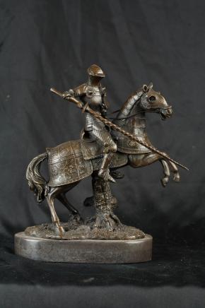 French Bronze Knight Horseback Jousting Statue Medieval Horse