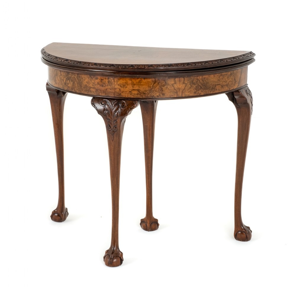 Queen Anne Style Burr walnut Demi Lune Card Table.