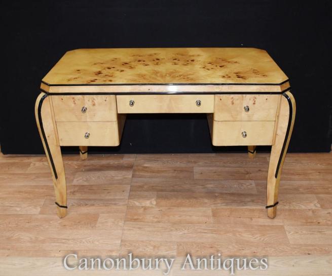 Art Deco Pedestal Desk Writing Table Blonde Walnut