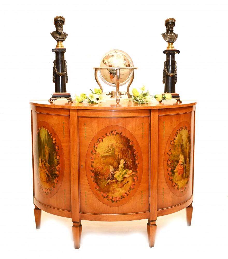 A Demilune satinwood commode painted the the Angelica Kaufman manner
