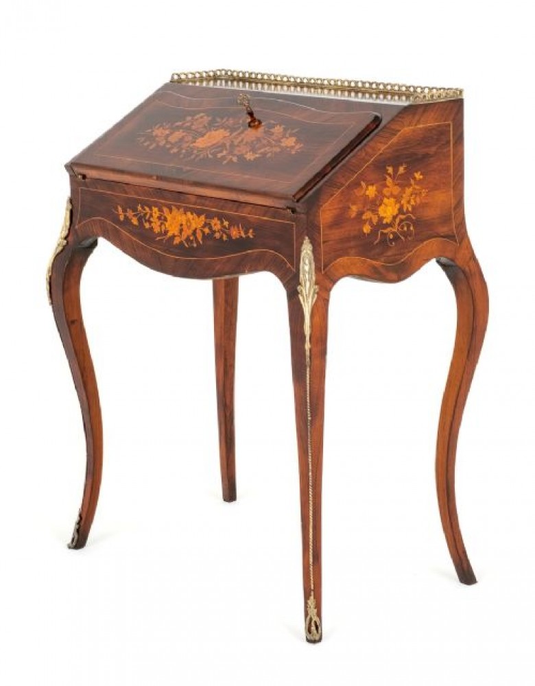The Top of the Bureau Having a Pierced Brass Gallery and Floral Marquetry Inlays.