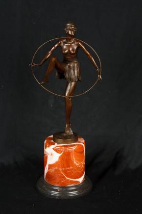 Art Deco Bronze Hoop Girl Statue by Charles Sykes 1920s