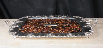 – Gorgeous Victorian style silver plate serving platter with large retractable dome